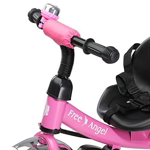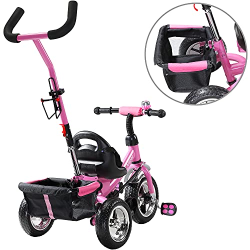 - SICHER UNTERWEGS - Der Lenker besitzt rutschfeste Griffe und eine Klingel. Außerdem können Eltern dieses Dreirad durch die Schubstange lenken. Die Felgen sind komplett verblendet, damit nichts zwischen die Speichen gelangen kann.